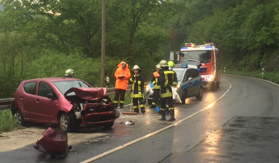 Nach einem Verkehrsunfall mit einer verletzten Person wurde die Feuerwehr alarmiert um massiv auslaufende Kraftstoffe auf zu nehmen.